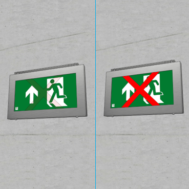 5021-SX med tilhørende styreenhet oppfyller kravene i bl.a. SN-CEN/TS 17951:2024 for løsning med adaptiv skilting av rømningsvei.