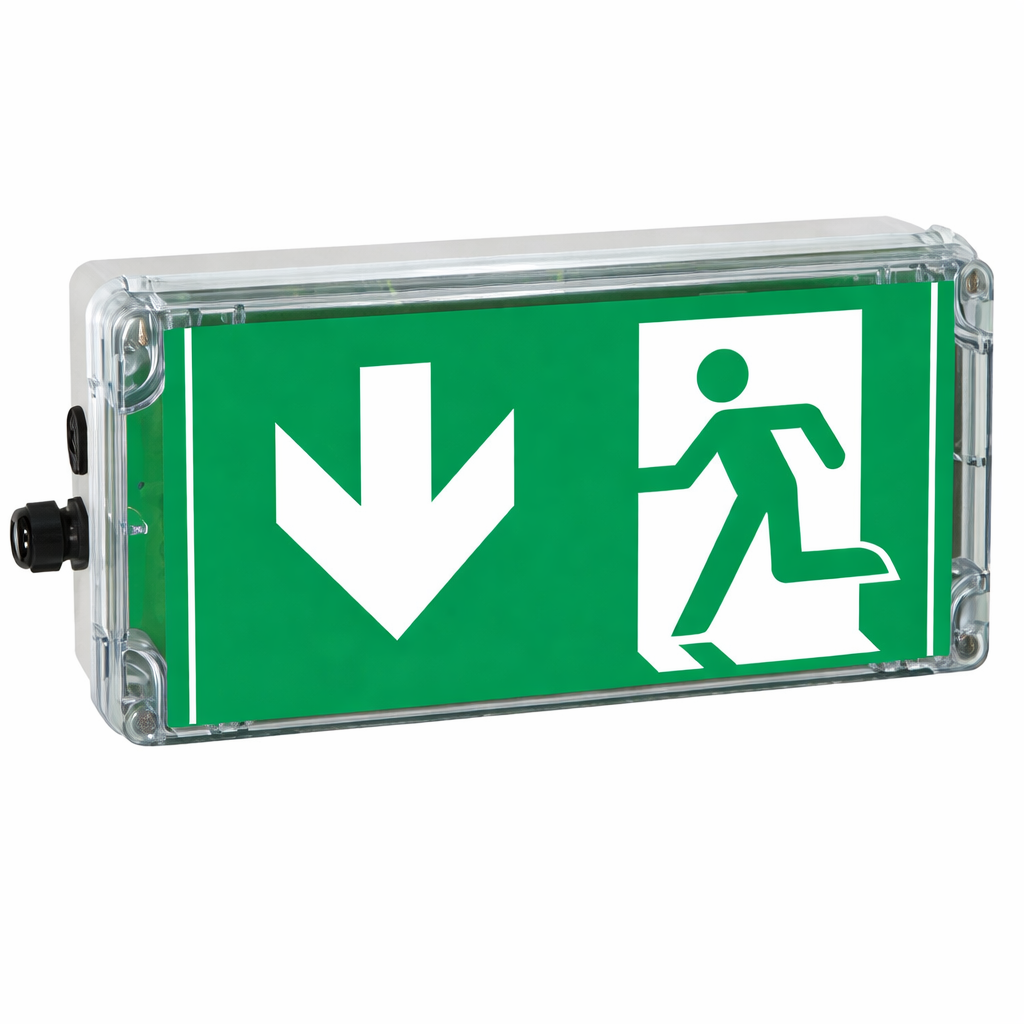 Se datablad for å skille sone 1/21 med EXIT V-CG-S og sone 2/22 med EXIT 2V-CG-S. Begge seriene består av armaturer med varenummer for dedikert pilretning,